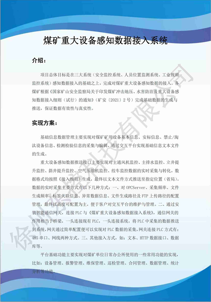 专业从事矿山安全检测设备的研发、生产、销售与服务,主要研发产品有矿山安全检测仪器、本安型传感器、料试验装备、风洞装备等,并提供矿山设备感知监控系统、检验检测云平台等产品和解决方案。